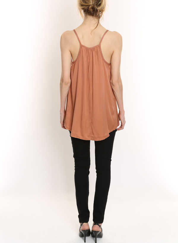 Silk cami. Tie front detail, with hook and eye. Ruched neckline. Loose through the chest and bodice. 100% Silk. Dry clean. - Additional Information